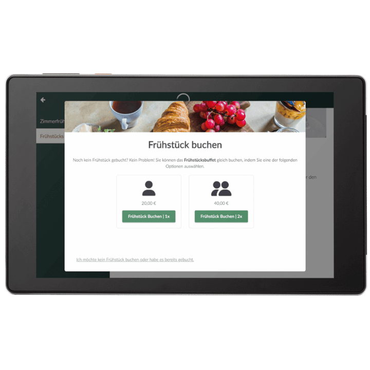 Ermöglichen Sie Gästen, Spa-Termine zu buchen, Frühstück zu bestellen oder Services zu planen – ganz bequem vom Zimmer aus und ohne Anruf bei Ihrem Team.