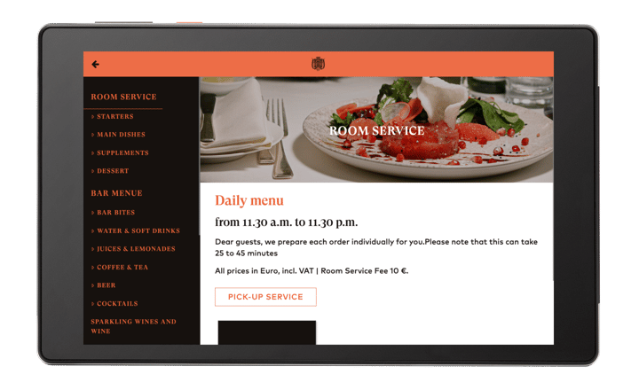 When the tablets were first introduced, the hotel anticipated a gradual adoption by guests, but the response was positive from the start. Over 3,000 guest sessions were logged in the first few months, with guests using the tablets for everything from ordering Room Service to giving feedback. In fact, more than 60% of all Room Service bookings now come through tablets, a clear sign that guests not only embraced the technology but preferred it over traditional phone bookings. Plus, the tablet also made it possible for the hotel to adjust offerings daily or even hourly to test new menu items and specials without reprinting the guest directory.