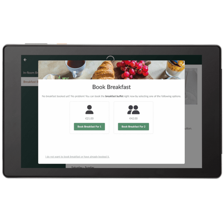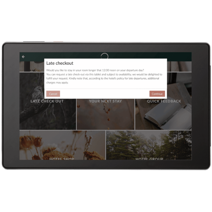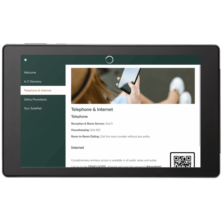 Guest directory, booking tool, hotel phone, and remote control all in one.