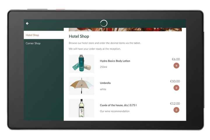 With the SuitePad in-room tablet, your hotel shop becomes a virtual display for showcasing regional specialties, handcrafted goods, and other souvenirs.